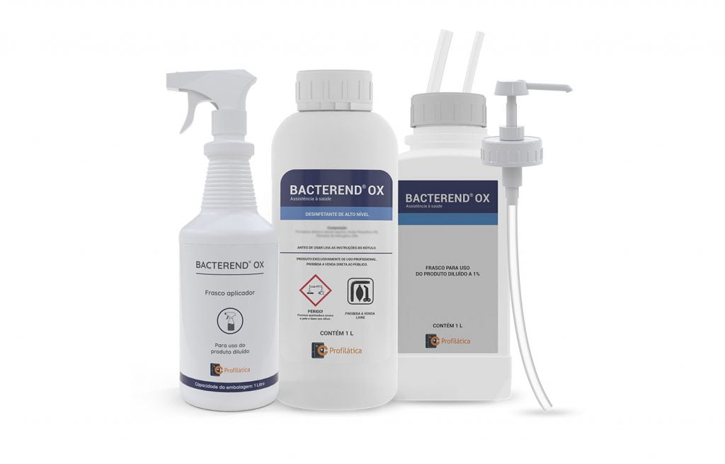 BACTEREND® OX é um desinfetante de alto nível à base de ácido peracético em equilíbrio, especialmente indicado para a desinfecção de sugadores e mangueiras do seu equipo odontológico.